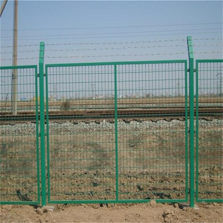 鐵路隔離網(wǎng)的類型大致分為:雙邊絲護欄,直框護欄,頂部30°折彎的護欄。一般鐵路線路兩側(cè)為了阻止落石或者阻擋外界的任何動物的時候會選擇雙邊絲護欄網(wǎng)作為隔離網(wǎng)。鐵路鐵軌兩側(cè)會使用直框護欄或者加折彎的護欄作為防護網(wǎng)。但是作為鐵路隔離柵的護欄邊框不能使用普通的20*30的小邊框,而是采購30*40的方管邊框作為護欄網(wǎng)的邊框與低碳鋼絲焊接?;蛘呤且凿摪寰W(wǎng)作為網(wǎng)片,四周焊接角鐵,也被稱為框架型的鐵路防護柵欄。安裝尺寸:1.8米*3米,柱中到柱中,鐵路線路上常采用水泥立柱與網(wǎng)片連接。邊框:30*40mm,或者40*40的角鐵。表面處理:浸塑草綠色或者浸塑墨綠色。