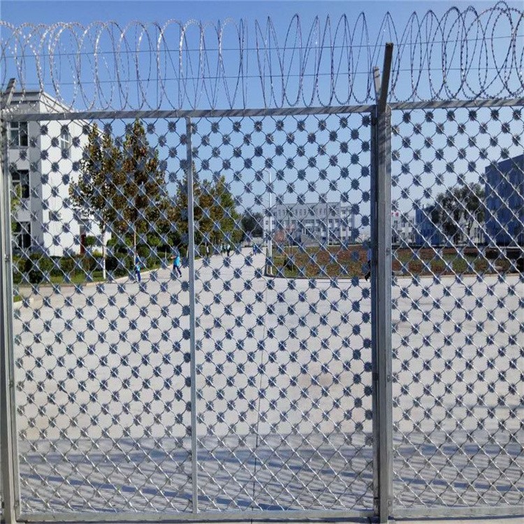監(jiān)獄防攀爬護(hù)欄網(wǎng)是菱形的網(wǎng)格,太陽花刺片由Q235低碳鋼板沖壓而成,其直徑大于7.5cm,刺片厚度為1.3mm。網(wǎng)格尺度為85*85mm,100*100mm也可定制.監(jiān)獄防攀爬護(hù)欄網(wǎng)的結(jié)構(gòu)和柱子選用邊耳銜接方式固定,邊耳選用扁鐵加工,規(guī)格為50*50*5mm.側(cè)耳的螺絲孔可根據(jù)裝置要求進(jìn)行調(diào)理,調(diào)理距離不小于。側(cè)耳的固定螺栓是直徑14mm * 50mm的熱浸鍍鋅螺栓。立柱由Y形鍍鋅鋼管制成,鋼管為150*150*8mm,網(wǎng)架的尺度為60*60*2.5m.監(jiān)獄防攀爬護(hù)欄網(wǎng)的尺度為2500 * 3000mm,4000*3000mm此外,監(jiān)獄防攀爬護(hù)欄網(wǎng)的Y形柱還裝備了不銹鋼刀片刺網(wǎng),并對(duì)其外表進(jìn)行了噴涂。常見的是深綠色噴涂和銀灰色噴涂,看起來高端,簡單而美麗,并且能夠起到防腐防銹的效果,還能夠起到裝飾環(huán)境的效果。