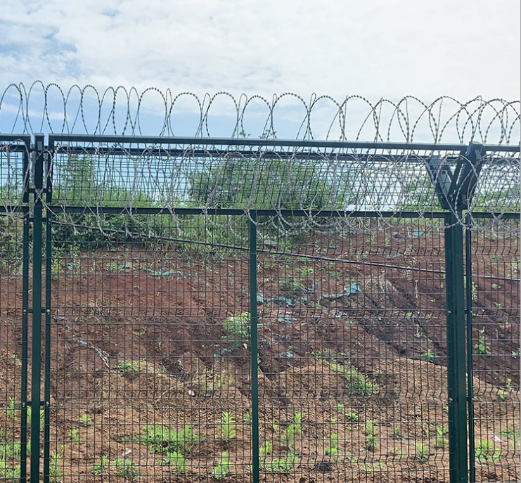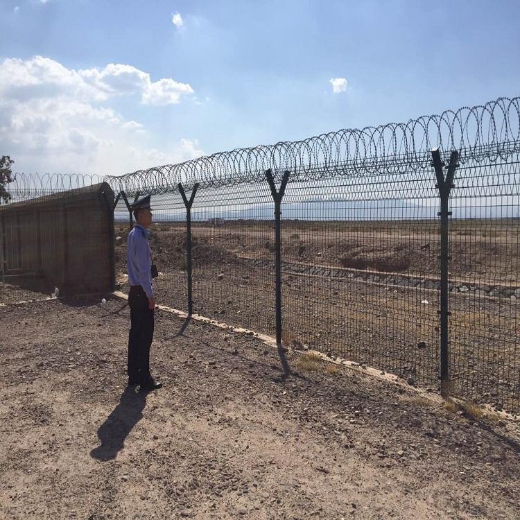 機場隔離柵首先進取相對應的原材料,一般機場護欄的立柱為2.5米高,立柱方管采用鍍鋅方管60mm,4mm厚,Y型頭為500mm的,垂直高度為3.46米,立柱為預埋柱,網(wǎng)框為50x50x5mm鍍鋅角鐵,絲徑為絲中到絲中50mmx100mm塑前的粗度5mm的絲,V字網(wǎng)與網(wǎng)框網(wǎng)片絲徑絲粗相同,刺繩為60mm直徑圓的熱鍍鋅刀片刺繩,整體浸塑為墨綠色,浸塑采用塑粉浸塑完成,表面光滑,上塑量高,一般整套2米x3的機場護欄網(wǎng)上塑量高達百分之十左右。刀片刺繩不浸塑。機場護欄網(wǎng)不光是立柱為預埋柱,還每9米設(shè)置了一道斜撐,這樣有利機場護欄網(wǎng)的穩(wěn)定性能,是結(jié)實實用的優(yōu)質(zhì)護欄網(wǎng)。