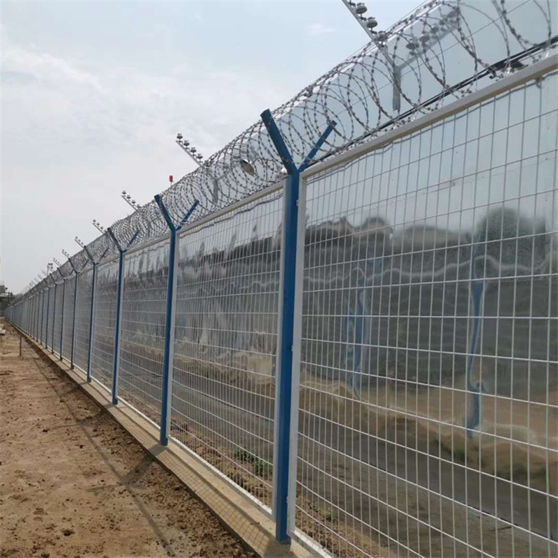 立柱的頂部焊接V型彎頭,這種立柱也叫做Y型立柱,頂部用以架設(shè)蛇腹形刀刺網(wǎng),與下部的監(jiān)獄隔離網(wǎng)完美結(jié)合,形成一道難以逾越的銅墻鐵壁。