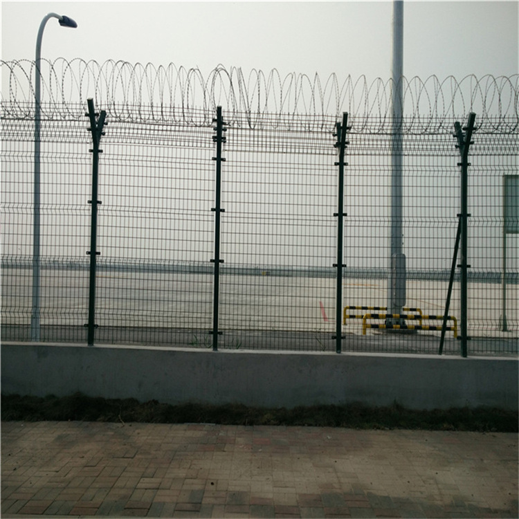 邊境Y型護(hù)欄網(wǎng)圍墻主要采用焊接網(wǎng)隔離柵,1、采用5.0mm高強(qiáng)度低碳鋼絲焊接。2、網(wǎng)孔:50mmX100mm,50mmX200mm。3、網(wǎng)片中帶有V型加強(qiáng)筋,可大大增強(qiáng)圍網(wǎng)的防沖擊力。4、立柱為60*60mm、80*80mm的矩形鋼,頂端焊有V型之架。5、表面處理:產(chǎn)品均為熱鍍鋅后采用高質(zhì)量的聚酯粉末靜電噴涂,采用國際流行的RAL顏色,或低碳鋼絲粉末浸塑,塑層厚,防腐蝕力強(qiáng)。