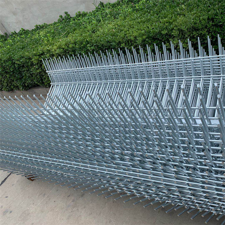 這是我廠新生產出的鐵路防爬刺、圍墻加高刺網產品,采用10個粗鋼筋焊接成鋼筋網片,孔小不可防攀爬和翻越每根鋼筋的頂部都焊接刺尖。表面處理采用整體熱鍍鋅,使用年限在15年以上,增加圍墻高度的同時,也有防攀爬效果。