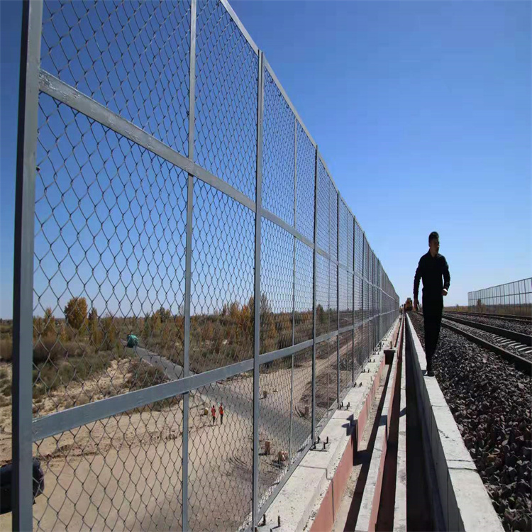 鐵路防拋網(wǎng)是由優(yōu)質(zhì)低碳鋼絲經(jīng)過拉拔、編織、焊接、浸塑等一系列工藝加工而成,它廣泛用于市政高架橋,高速公路立交橋, 鐵路立交橋,過街天橋,港口碼頭,畜牧,養(yǎng)植等的護欄防護。