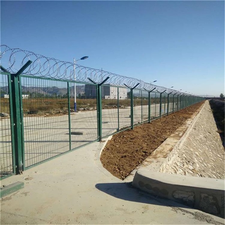 安裝完網(wǎng)片以后檢查是否有螺絲松動,施工時表面的破損,及時刷防銹漆,以防止生銹。檢查立桿是否有松動現(xiàn)象,如有,需及時處理。最后將不銹鋼拉絲固定在隔離網(wǎng)的頂部,形成一個v型托網(wǎng)用于架設蛇腹形刀刺網(wǎng),將刀刺網(wǎng)按照12cm的間距均勻鋪設在v型支架上,用不銹鋼防拆卸卡扣與v型托網(wǎng)上的不銹鋼拉絲固定。在安裝完成后,對監(jiān)獄隔離網(wǎng)的防攀爬性能,進行跨越、防破壞測試。待以上工作完成以后,通知業(yè)主進行驗收。