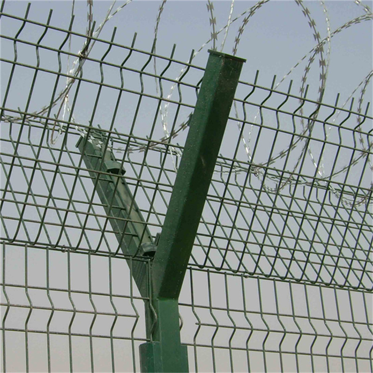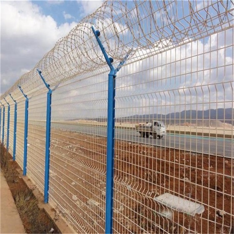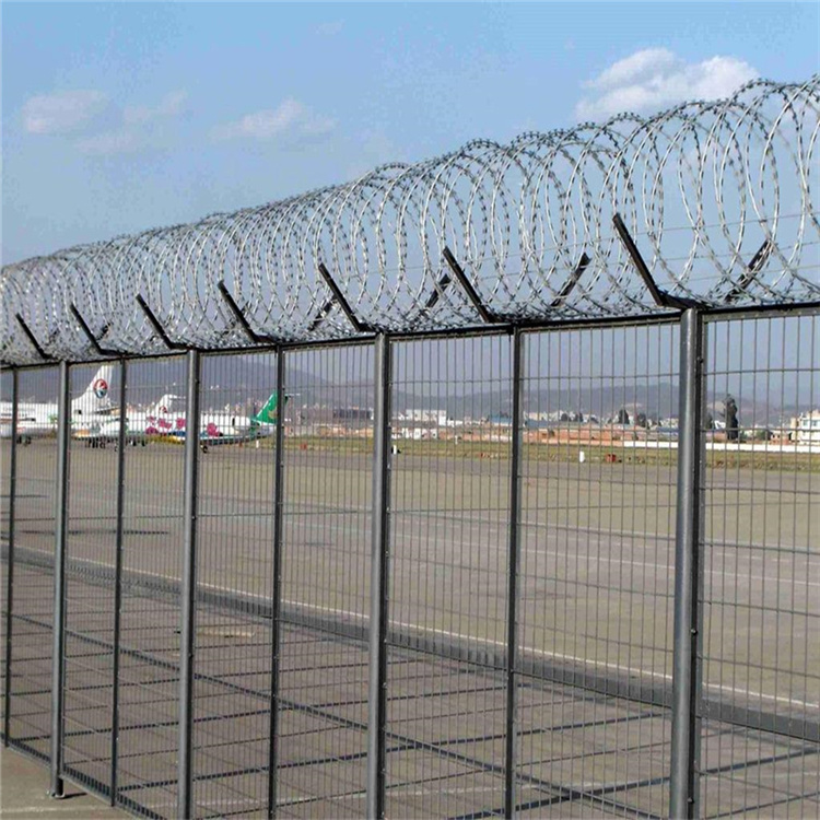 機場圍界網(wǎng)是一種高安全隔離防護網(wǎng),這種新型隔離網(wǎng)一般由鋼筋焊接網(wǎng)、Y型防護立柱以及蛇腹式刀刺網(wǎng)等幾大主體組成。既有良好的通透性,又能起到強有力的安全隔離防護效果。頂部加裝刀刺網(wǎng),鋒利的刀型,有效制止的攀爬行為,強有力的發(fā)揮著保護機場作用。