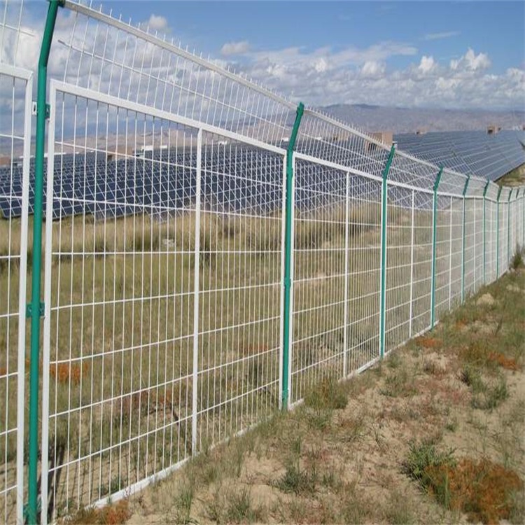 光伏電站圍欄網(wǎng)是由高強度低碳鋼絲焊接而成,后經(jīng)高溫?zé)峤芴幚?,具有一定的耐腐蝕效果,不易生銹。