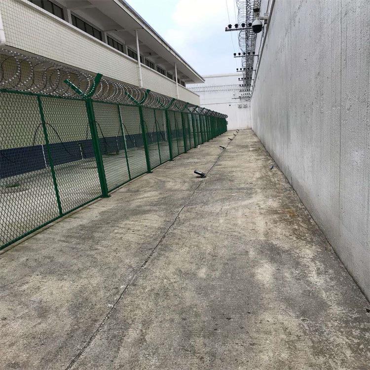 2、監(jiān)獄內(nèi)部放風(fēng)地隔離網(wǎng)安裝高度一般在5米高左右,內(nèi)外兩層,兩層之間可加刀片刺繩,防止攀爬。