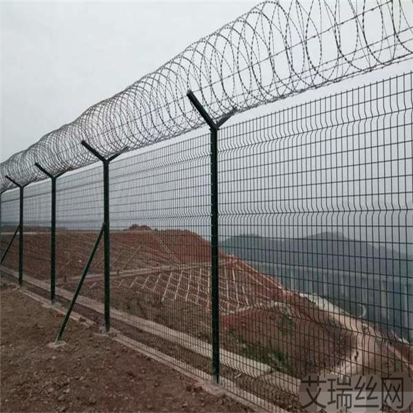 3.機場圍界采用低碳鋼絲(Q195),表面浸塑防腐處理,顏色為綠色