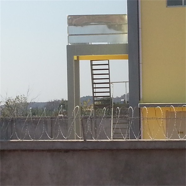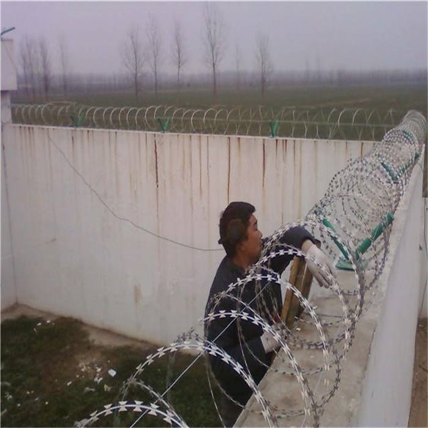 螺旋型交叉式刀片刺繩實(shí)在兩條刀片刺繩之間以不銹鋼片和鍍鋅鋼片強(qiáng)力夾合,展開(kāi)之后集成交叉裝,美觀且具有一定的阻嚇效果。