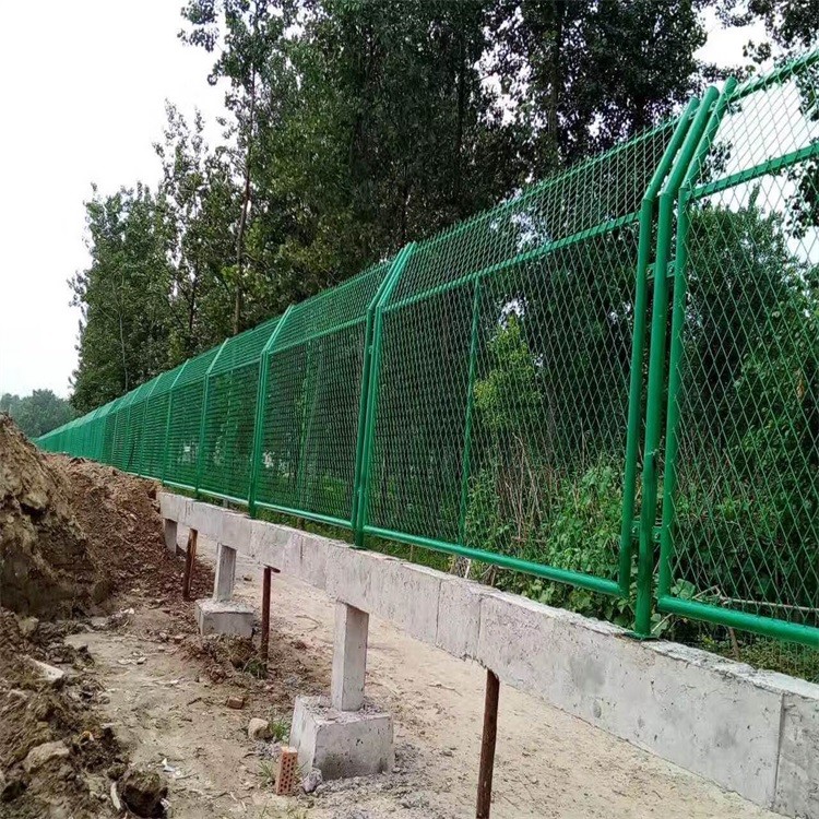 鐵路菱形孔防護網(wǎng)的樣式規(guī)格,常見的鐵路防護網(wǎng)是用方孔、長方孔框架網(wǎng)片制作而成的,但也有一種用鋼板網(wǎng)、斜方網(wǎng)制作而成的鐵路防護網(wǎng),這種防護網(wǎng)的網(wǎng)孔是菱形孔,是不太常見的,但是也有的客戶會要求做成這種。
