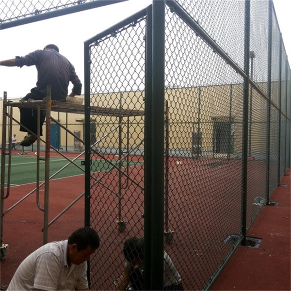 除了球場兩側的防護網外,一些球場護欄網帶內的護欄網,也需要相互搭建起來。對于球場護欄網立柱與地面的銜接,要采用混凝土預埋式,需在地面預留400*400*500的預埋坑,放上立柱調整好水平及直線后,在坑澆鑄混凝土,待凝固后安裝球場護欄網片即可。