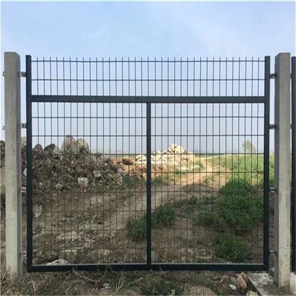 鐵路防護柵欄網為冷拔鋼絲點焊熱浸塑網片,外型尺寸為2760*1790mm,網格尺寸為75*150mm,鋼絲為φ4mm , 網片邊框采用20*30*1.5mm的方管焊接而成,網片連接片由40*40*4mm鋼片制作,防盜螺栓的螺柱、螺帽、墊圈等作熱鍍鋅處理。鐵路柵欄網片表面采用熱浸塑處理,顏色為墨綠色,整個結構表面平整光滑,色澤均勻,無漏鍍、開裂、脫皮及脫落等缺陷。網片浸塑所用的材料及PE表層環(huán)保性好,無污染。