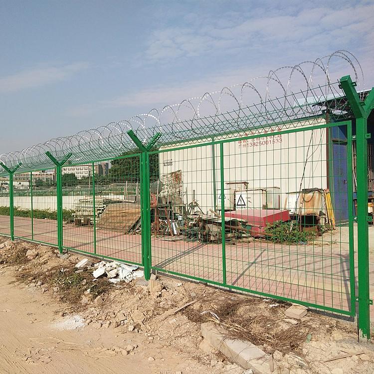整個(gè)系統(tǒng)是由:Y型立柱、刺絲滾籠隔離網(wǎng)網(wǎng)片、蛇腹型不銹鋼刀刺網(wǎng)及安裝附件組成。