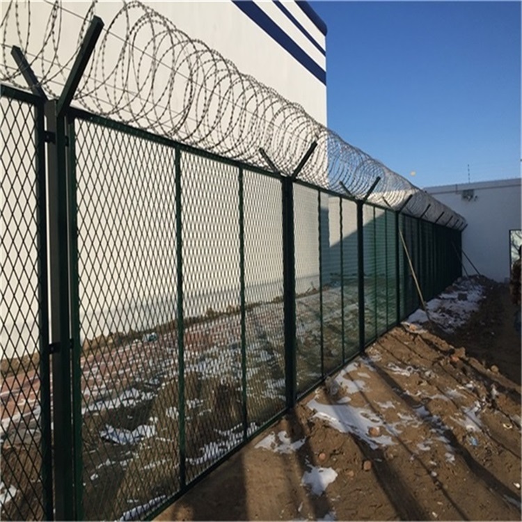 監(jiān)獄滾刀網(wǎng)隔離網(wǎng)網(wǎng)片:寬2500mm、高2000mm,分上下二層結(jié)構(gòu),總高4米;上下層之間邊耳連接,根據(jù)需要做加強(qiáng)折彎,確保網(wǎng)片不變形。