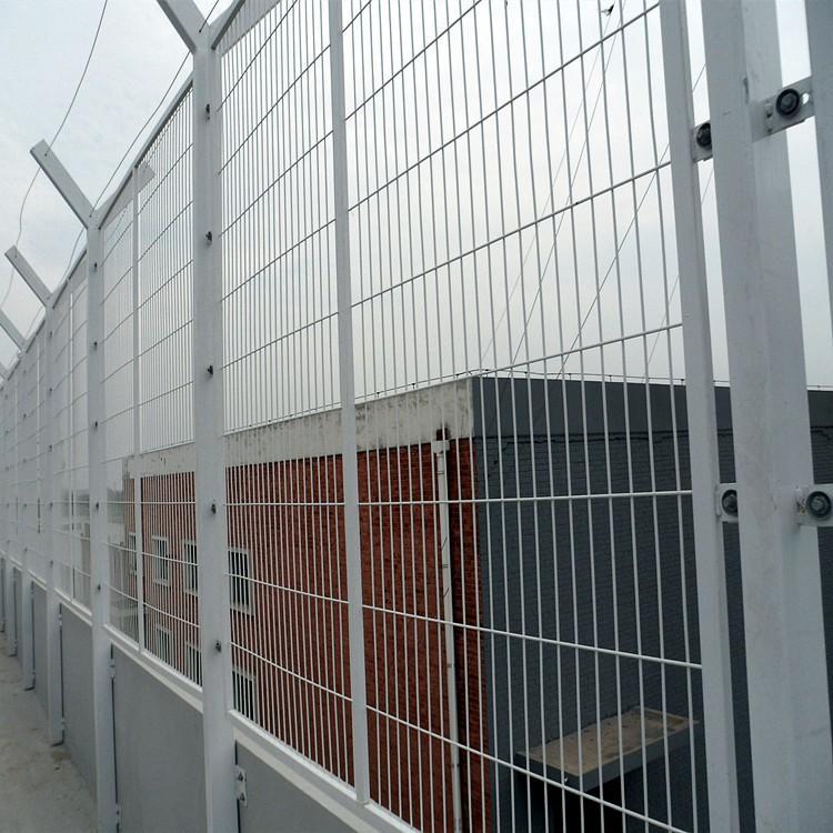 看守所隔離網(wǎng)立柱要求:監(jiān)獄看守所隔離網(wǎng)的立柱需要根據(jù)不同的高墻來設(shè)計成不同的樣式,一般分為:底盤柱、側(cè)面底盤柱、小底盤柱等等。立柱的原材料外形尺寸一般選:80*80/60*60等等。大多數(shù)采用帶V型柱的立柱,頂部安裝蛇腹形刀刺網(wǎng)。