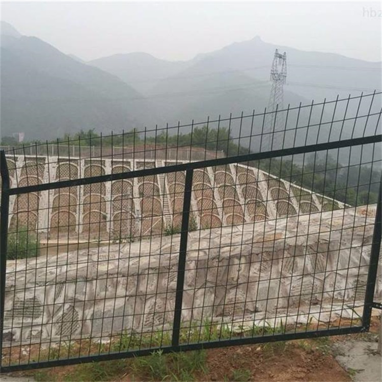 防護柵欄網(wǎng)片網(wǎng)絲采用HPB300直徑6.5mm高線鋼絲冷拔加工,上部向外折角30°焊接成型后整體鍍鋅并進行熱浸塑處理。鍍鋅量270g/㎡,浸塑厚度0.8mm-1.2mm。