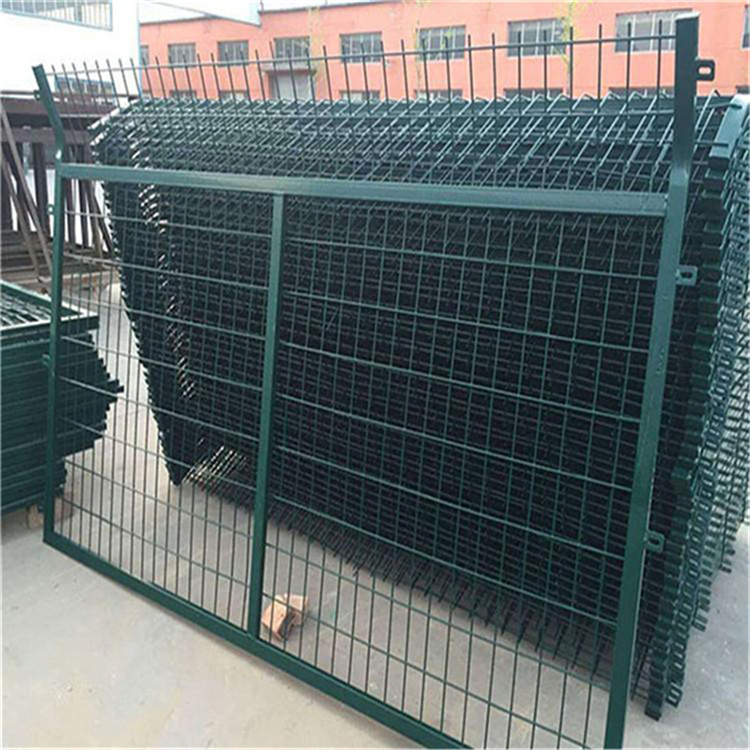 連接板的精度要求:長(zhǎng)度誤差≤1.0mm,寬度誤差≤0.5mm,厚度誤差≤0.5mm,孔眼位置偏差≤1.0mm。金屬網(wǎng)片及柵欄門的網(wǎng)片成形后應(yīng)整體鍍鋅并進(jìn)行熱浸塑(或噴塑)處理,鍍鋅量70g/m2,浸塑厚度0.8mm~1.2mm,噴塑顏色選用墨綠色。涂層應(yīng)均勻,顏色一致,表面光滑,無流柱,滴瘤、粉泡、漏鐵等缺陷。