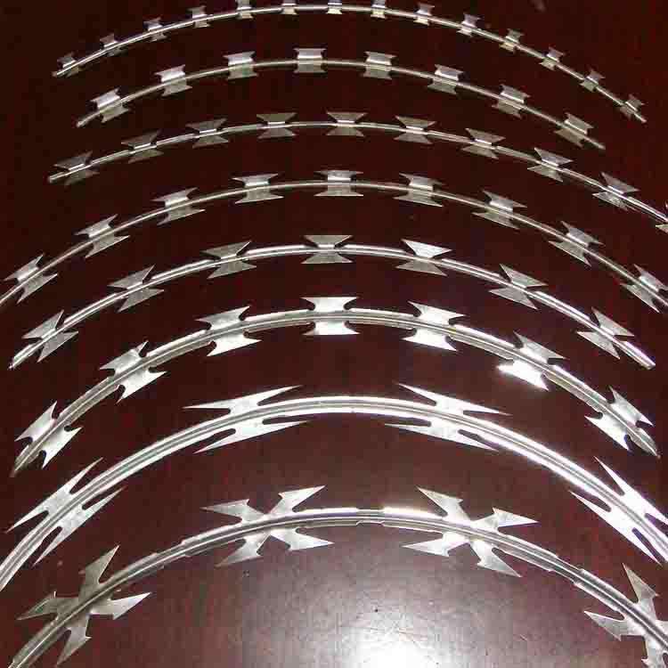 刀刺網(wǎng)又叫刀片刺網(wǎng),刀刺隔離網(wǎng),它是一種阻絕措施,由不銹鋼板或者鍍鋅鋼板經(jīng)過(guò)沖壓刀型和芯線制成,芯線一般是由具有很大張力的鋼絲做成的,原材料的特性造就了刀刺網(wǎng)具有防破壞、耐腐蝕等特點(diǎn)。