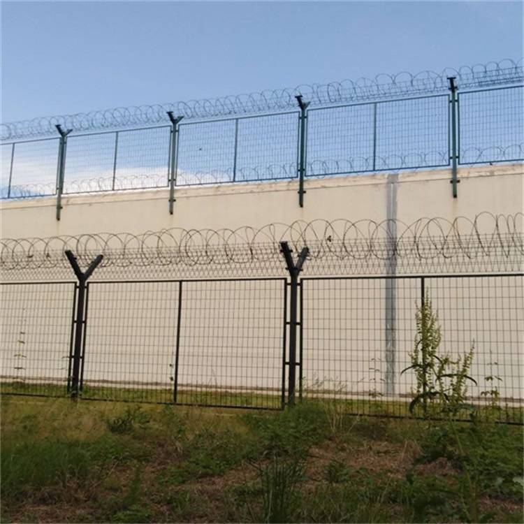 監(jiān)獄獄墻隔離網(wǎng)一般是由Y型立柱和加強(qiáng)型網(wǎng)片而組成,上面安裝50、60或者80公分的刀刺滾籠,安全防御級(jí)別很高,被廣泛應(yīng)用于戒毒所、看守所、監(jiān)獄、軍事基地等高安全場(chǎng)所。