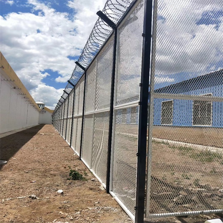 監(jiān)獄鋼網(wǎng)墻有兩種安裝形式:焊接刀片刺網(wǎng)鋼網(wǎng)墻和鐵絲焊接鋼網(wǎng)墻。監(jiān)獄鋼網(wǎng)墻由焊接鋼網(wǎng)加蛇腹形刀刺網(wǎng)組合而成。產(chǎn)品具有結(jié)構(gòu)新穎、堅(jiān)固緊密、網(wǎng)面平整、網(wǎng)孔均勻、刀鋒銳利、防攀爬、抗 腐蝕性強(qiáng)等特點(diǎn)。建設(shè)于監(jiān)獄的內(nèi)外墻地面及高墻之上,網(wǎng)墻內(nèi)側(cè)或頂部加裝蛇腹形刀刺網(wǎng),形成一道高不可攀、難以逾越的隔離障礙。配合高壓打擊電網(wǎng)、各種監(jiān) 控報(bào)警設(shè)備確保監(jiān)獄安全萬(wàn)無(wú)一失。