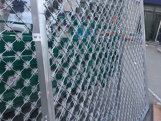 看守所鋼網(wǎng)墻組成結(jié)構(gòu):首先把網(wǎng)片焊接在鐵管框架上,框架是方管或者圓管焊接成的框架結(jié)構(gòu),在框架上焊接用于個(gè)立柱連接的連接板,用防盜螺栓與立柱連接。為了保證網(wǎng)片的防拆卸性能,網(wǎng)片連接方式采用特制防盜緊扣件,有效防止人為的破壞性拆卸。