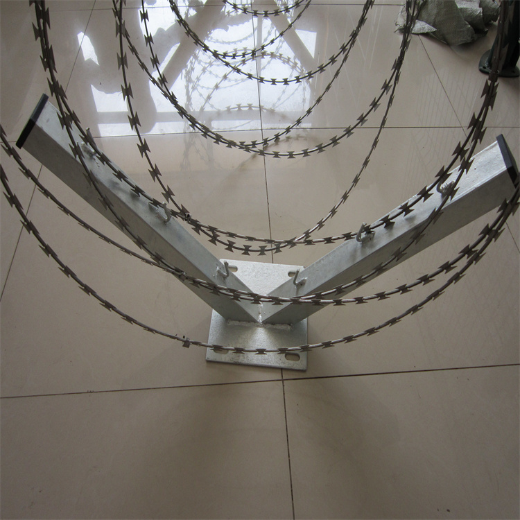 圍墻刀片刺網(wǎng)在設(shè)計安裝的過程中,我們強烈建議用V型支架固定,刀片刺繩在使用過程中,多數(shù)時候都是搭配安裝在鐵絲網(wǎng)圍欄的頂端,起增強防護作用的,如果作為墻的防護,安裝一定要牢固,防止一些外在的因素發(fā)生墜落。