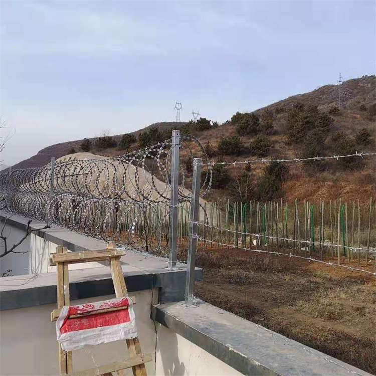 特 點:刀片刺網(wǎng)又名刮刀型刺絲,是一種發(fā)展起來的防護、隔離能力較強的新型防護網(wǎng)產(chǎn)品。鋒利的刀型刺由雙線扣裝后成蛇腹狀,既美觀又讓人不賽而榮。起到了很好的阻嚇作用。同時該產(chǎn)品具有美觀、防陰效果好、施工便利等優(yōu)點。刀片刺繩一般用干監(jiān)獄做防護用,因刀片鋒利不易觸摸,起到一定的嚇陰作用那個,刀片刺繩,用途比較廣泛,他可以用于居民的墻體防護,也可以用來地等,該刺繩防咨效果比普誦刺繩要好,價格也不高,所以刀片刺繩越來越應(yīng)用廣范。刀片刺網(wǎng)又名刀片刺繩,是一種發(fā)展起來的防護、隔離能力較強的新型防護產(chǎn)品。