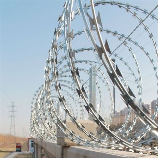 刺絲滾籠工藝:防爬次網(wǎng)由熱鍍鋅鋼板或不銹鋼薄板沖壓出尖銳的刀片狀,高張力鍍鋅鋼絲或者不銹鋼絲做芯線組合而成的阻絕器材。由于刺網(wǎng)造形獨(dú)特不易觸摸,因而能達(dá)到極好的防護(hù)隔離效果。