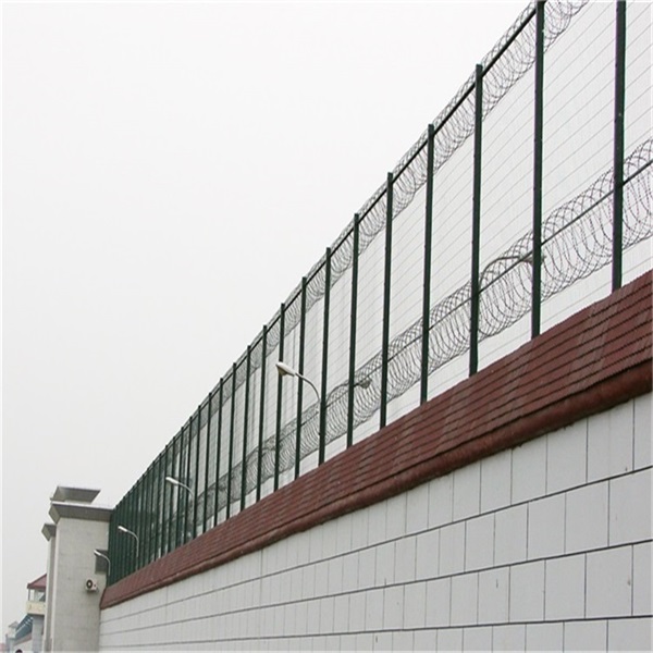 監(jiān)獄圍墻加裝隔離網(wǎng)是V型支架立柱,加強型焊接片網(wǎng),安全防盜連接件和熱鍍鋅刀片刺籠組成,強度和安全防御性級別很高。近年來,被廣泛應用在監(jiān)獄,軍事基地等高安全場所。