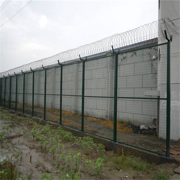 監(jiān)獄副警戒線防攀越式隔離網,在監(jiān)獄內距離獄墻3-5m處設置防攀越式隔離網和警戒標志,防止罪犯接近獄墻;采用立式Y式型柱、鋼絲網加蛇腹型刀刺網。總體質量要求:協(xié)調、美觀、堅固、安全。