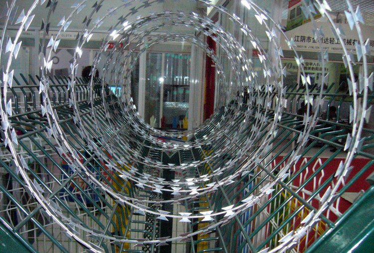 2、監(jiān)獄、看守所專用不銹鋼刀刺網(wǎng)的設(shè)計(jì)具備抗剪切、防攀爬功能。能夠十分有效的機(jī)械的防止罪犯的潛逃。