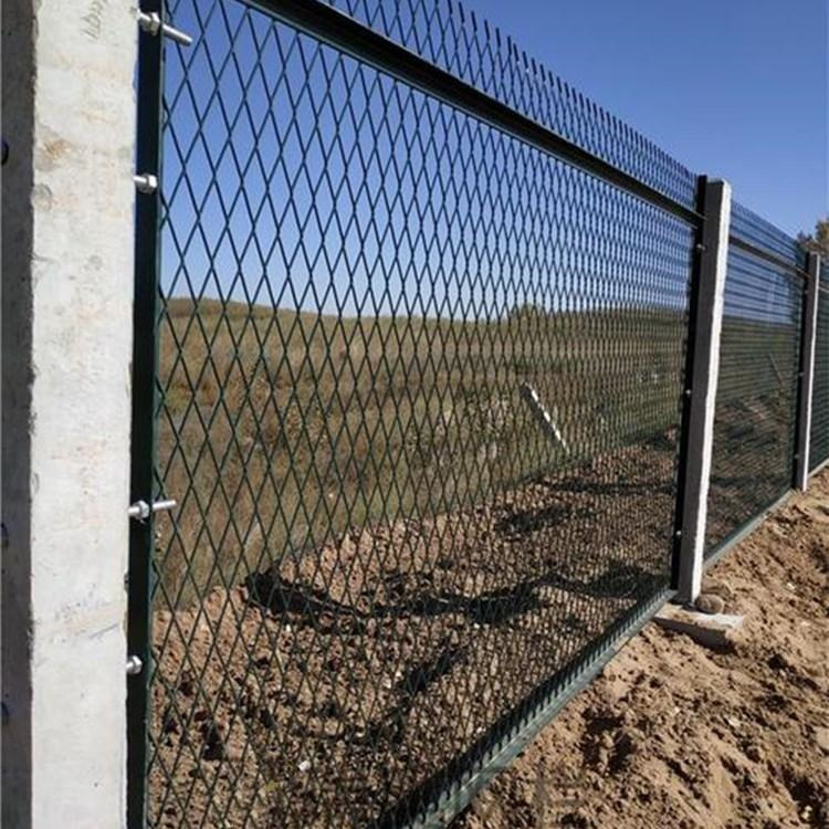 鐵路鋼板網(wǎng)防護(hù)網(wǎng),鋼板網(wǎng)護(hù)欄主要由邊框和成品沖壓鋼板菱形網(wǎng)組成,一般鋼板網(wǎng)護(hù)欄的網(wǎng)孔主要為60x100mm網(wǎng)孔組成,厚度為3mmx3mm左右,網(wǎng)孔稍微偏大點(diǎn)美觀,大方,風(fēng)阻小,能抵抗10級(jí)大風(fēng),鋼板網(wǎng)護(hù)欄一般用方管和角鐵兩種邊框焊接而成我們講的是利用角鐵焊接而成的鐵路旁邊用的鐵路隔離網(wǎng),說到鐵路隔離網(wǎng)我們都會(huì)知道是做什么用的,防止行人以及外界隔開的圍欄網(wǎng),一般角鐵采用50x50x5mm厚的角鋼作為邊框,邊框打孔利用螺絲固定連接在一起,然后平貼上鋼板網(wǎng),整體焊接好之后再做表面處理,浸塑。浸塑完成后就可以正常安裝了。一般鋼板網(wǎng)護(hù)欄有的需要立柱,有的用水泥立柱,很多的款式可供您選擇。