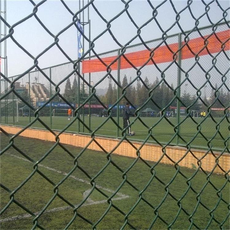 3、球場護(hù)欄網(wǎng)采用包塑的鐵絲網(wǎng),網(wǎng)眼面積應(yīng)為50毫米×50毫米(或45×45毫米),圍網(wǎng)的固定件不能有銳利的邊沿。